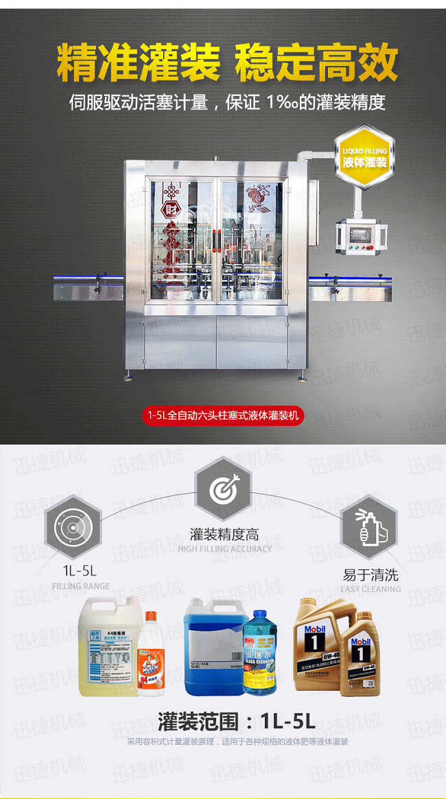 消毒液定量灌裝機(jī)應(yīng)用領(lǐng)域:適用于食品飲料、醫(yī)藥、化工、農(nóng)藥等行業(yè)中各種流動液體的灌裝。如潤滑油、消毒液、酒精、殺菌劑、溶液等。