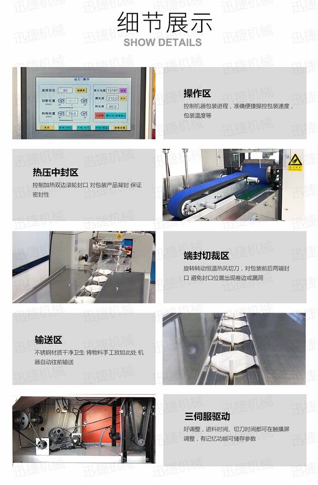 一次性口罩包裝設(shè)備口罩包裝機(jī)可用于餅干、月餅、蛋黃派、米餅、雪糕、方便面、巧克力等塊狀產(chǎn)品的包裝,特別適合于小批量單一產(chǎn)品的包裝。