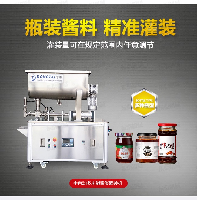 辣椒醬灌裝機(jī)是由我公司自主研發(fā),臥式攪拌,可以很好的解決大顆粒物料灌裝過(guò)程中油料分離過(guò)快而導(dǎo)致的灌裝誤差大等難題。主要適用于粘稠醬料,如麻辣醬、香辣醬、牛肉醬、豆辨醬、黃豆醬、豆豉醬等醬料產(chǎn)品。在包裝過(guò)程中,海鮮醬灌裝機(jī)可以實(shí)現(xiàn)產(chǎn)品從原料進(jìn)入到包裝機(jī)械開(kāi)始,經(jīng)過(guò)一些列生產(chǎn)活動(dòng)構(gòu)成的路線,從而達(dá)到無(wú)人化自動(dòng)包裝。如果您有需要,可以和我們聯(lián)系
