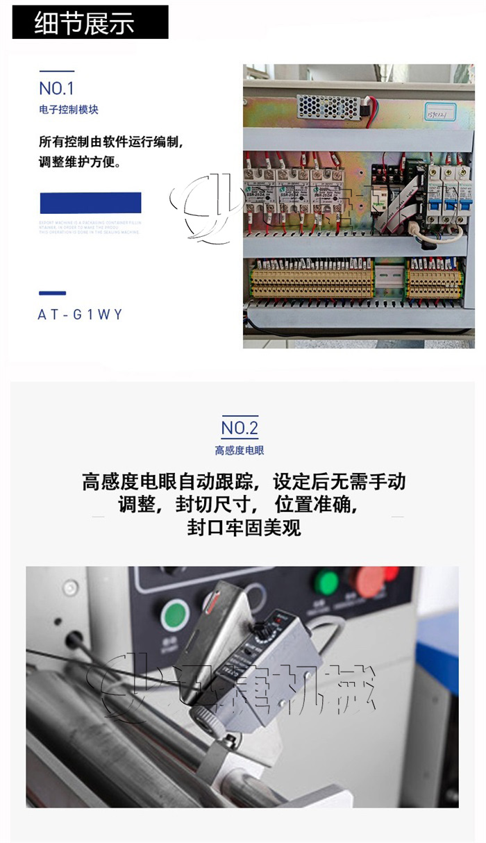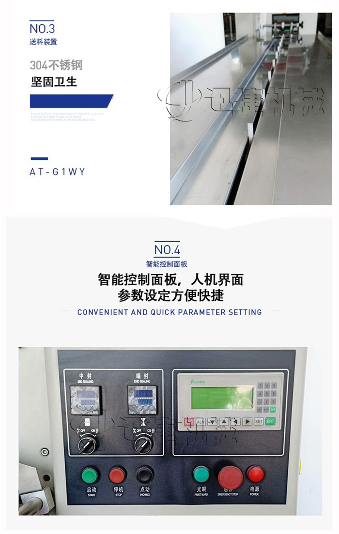 C、微電腦包裝控制器,優(yōu)良的人機(jī)對(duì)話模式,使速度、袋長(zhǎng)、切點(diǎn)位置檢測(cè)等都可在界面上直接顯示。